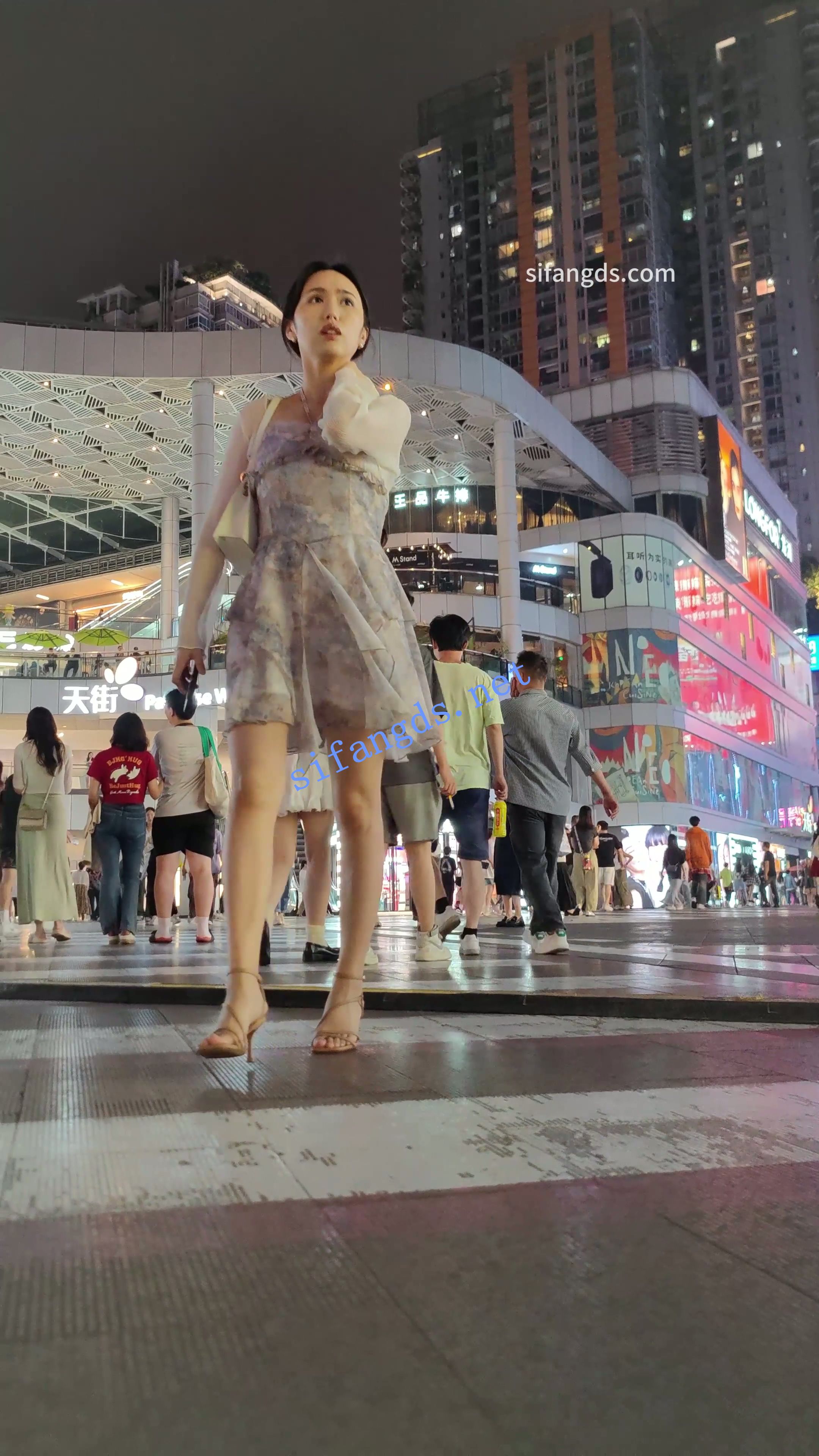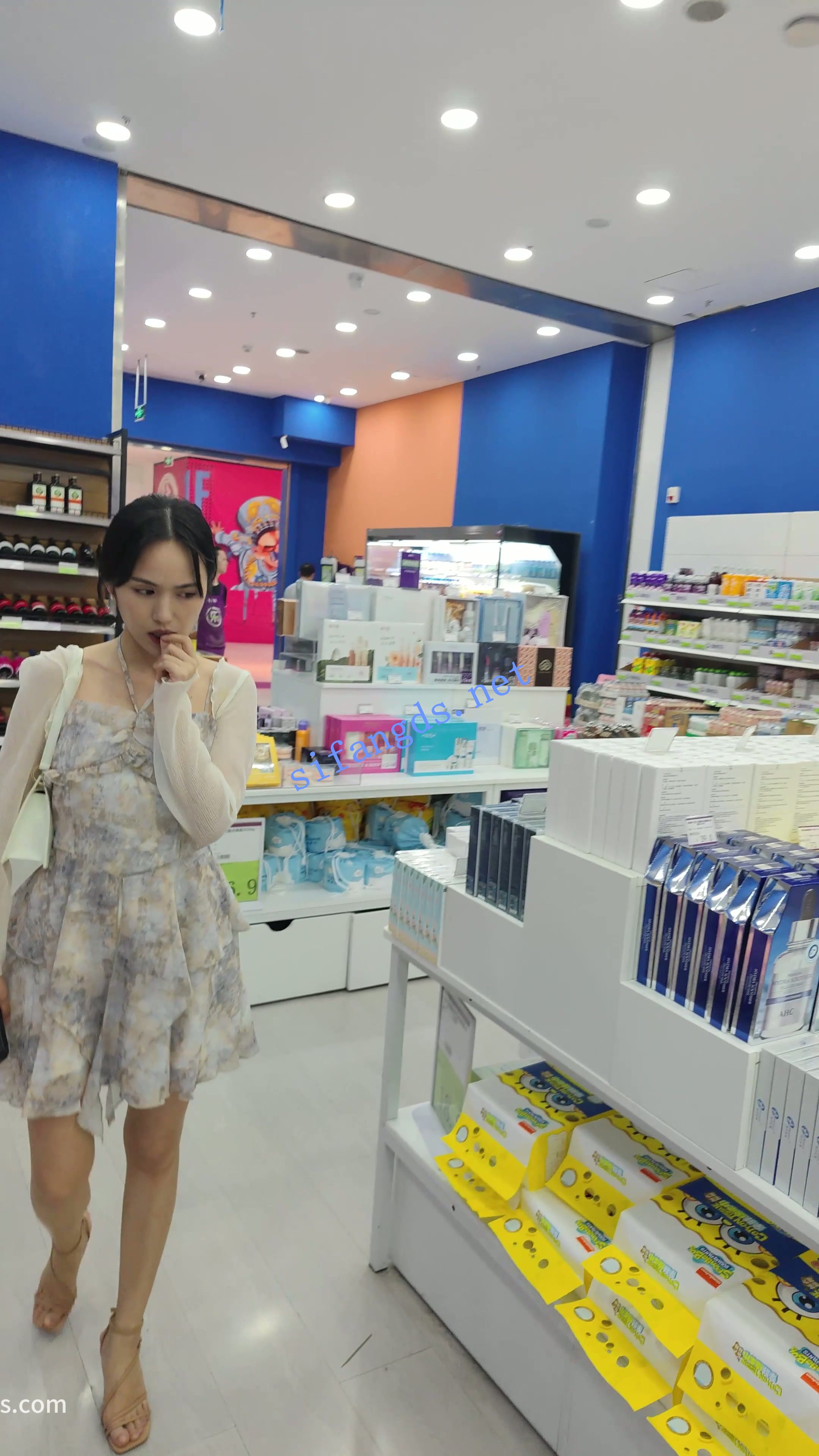 【说明】:蕾丝连衣裙细高跟鞋美女逛超市,紫色内露毛