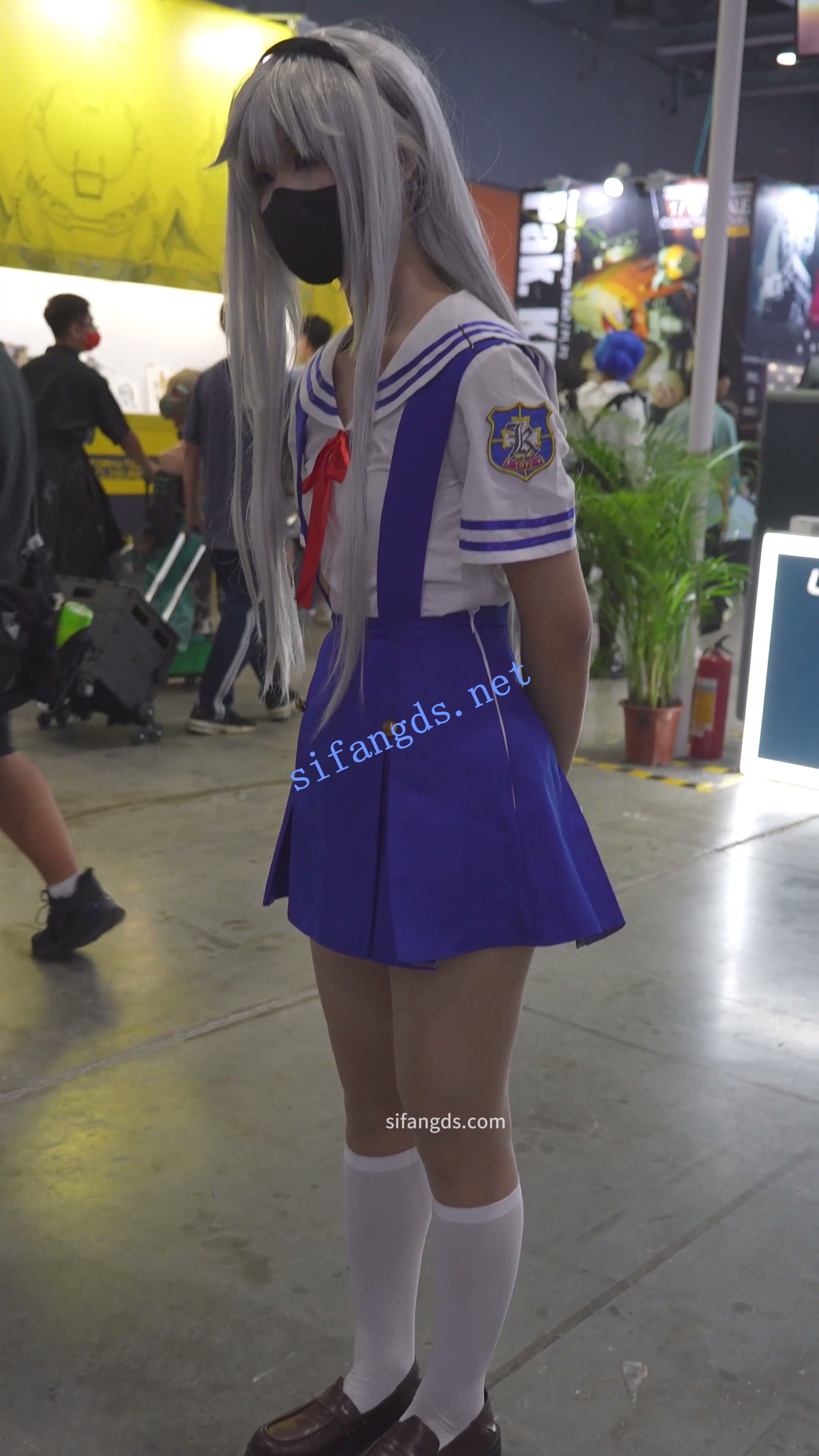 超短吊带制服小姐姐逛街,透明肉丝配灰内,裙子非常短,小姐姐往上抬手的时候,正面的路人视角能直接看到丝袜裆部和内裤。。