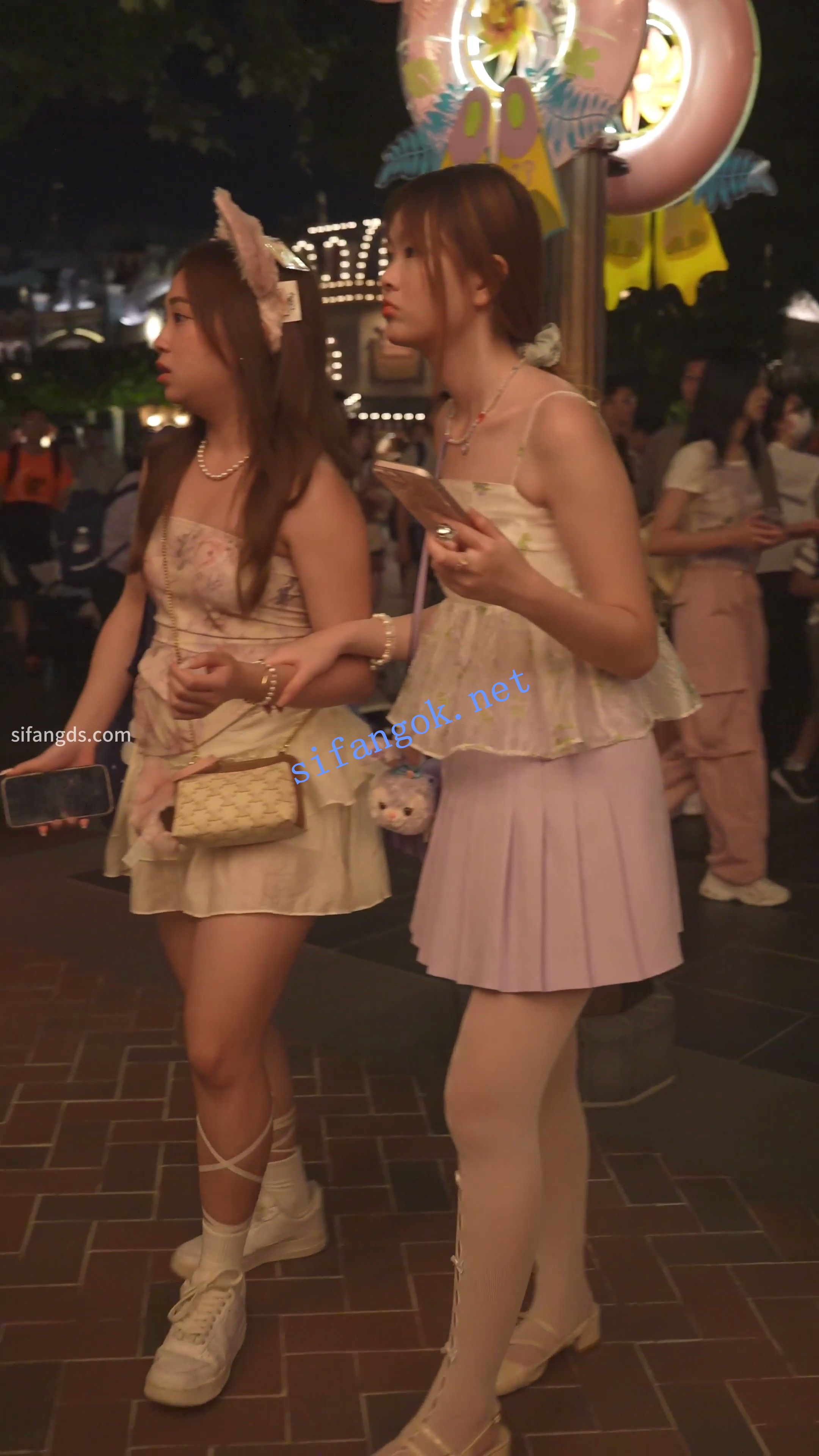 紫色百褶裙小姐姐逛街,裙子没有自带的内衬方便抄底,听她们的对话发现是泰国小姐姐来旅游,白丝网袜配浅蓝内前后CD,内衣内裤似乎是一套的。