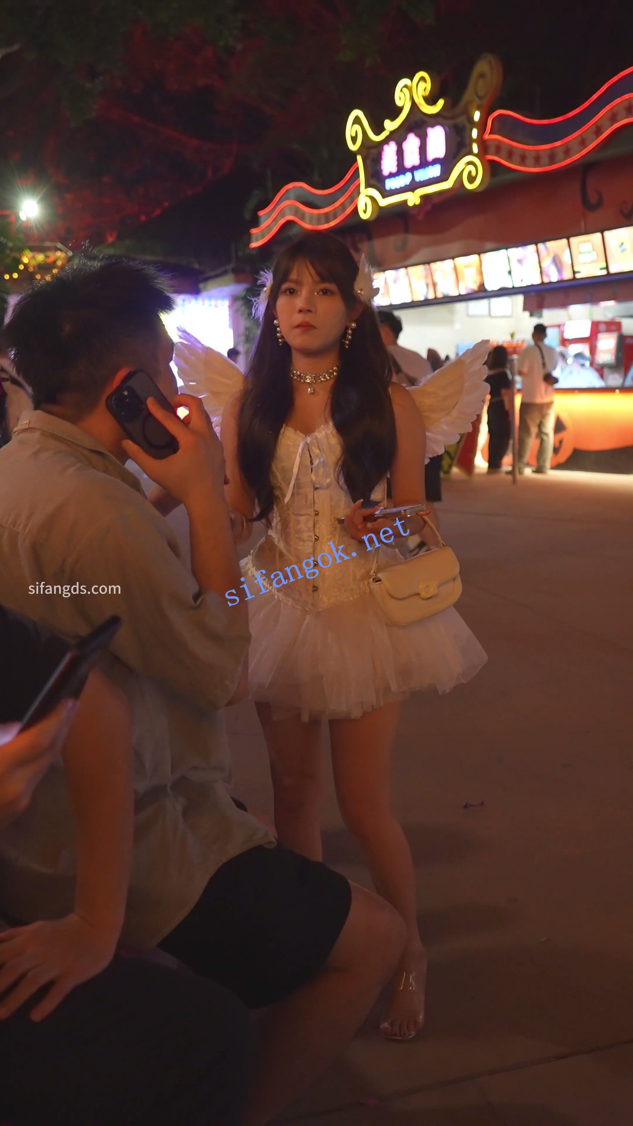 透明高跟蕾丝天使裙美女逛街,裙底的内裤也是透明蕾丝花纹款式,背面可以看到屁股缝,趁着人多直接开灯照亮屁股缝CD。。