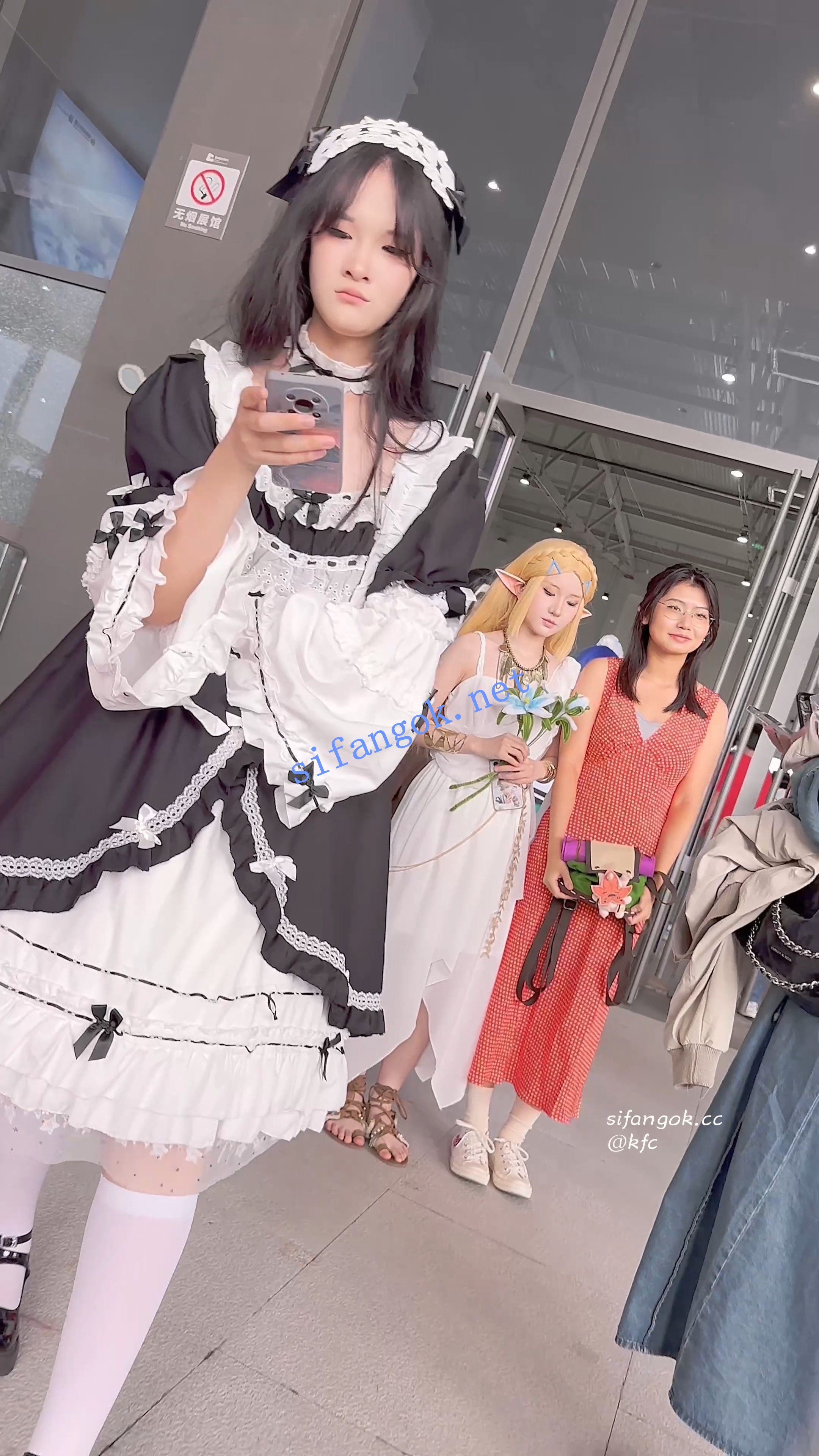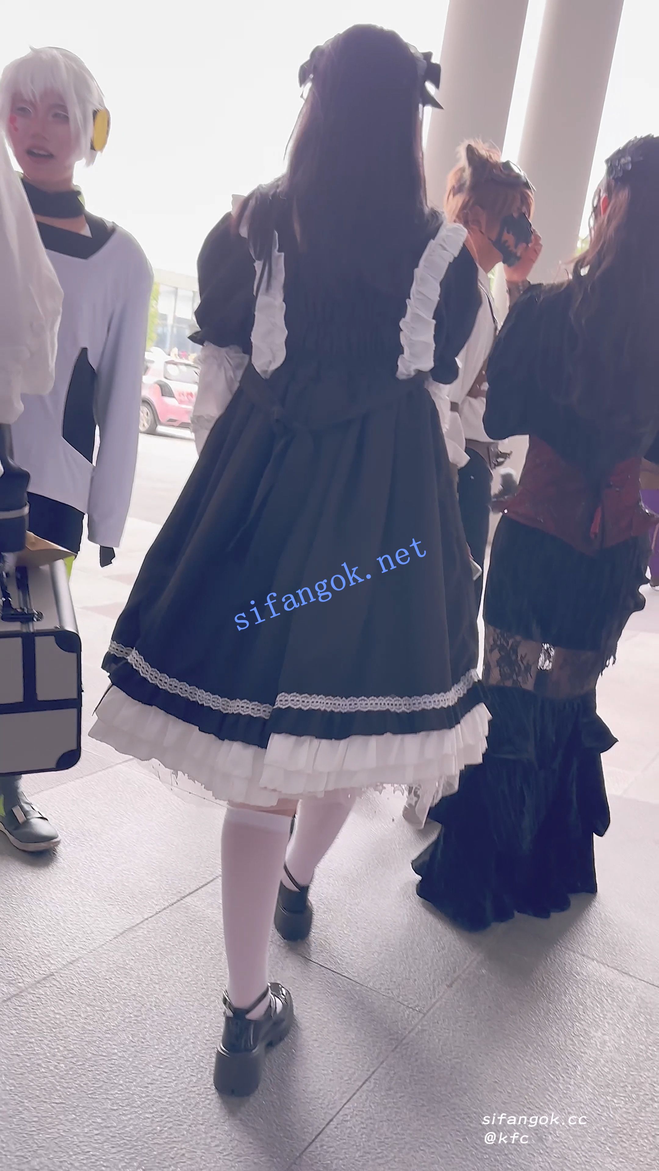 【KFC】女仆装洛丽塔小姐姐逛街·过膝袜淡蓝色内·尿黄一大片