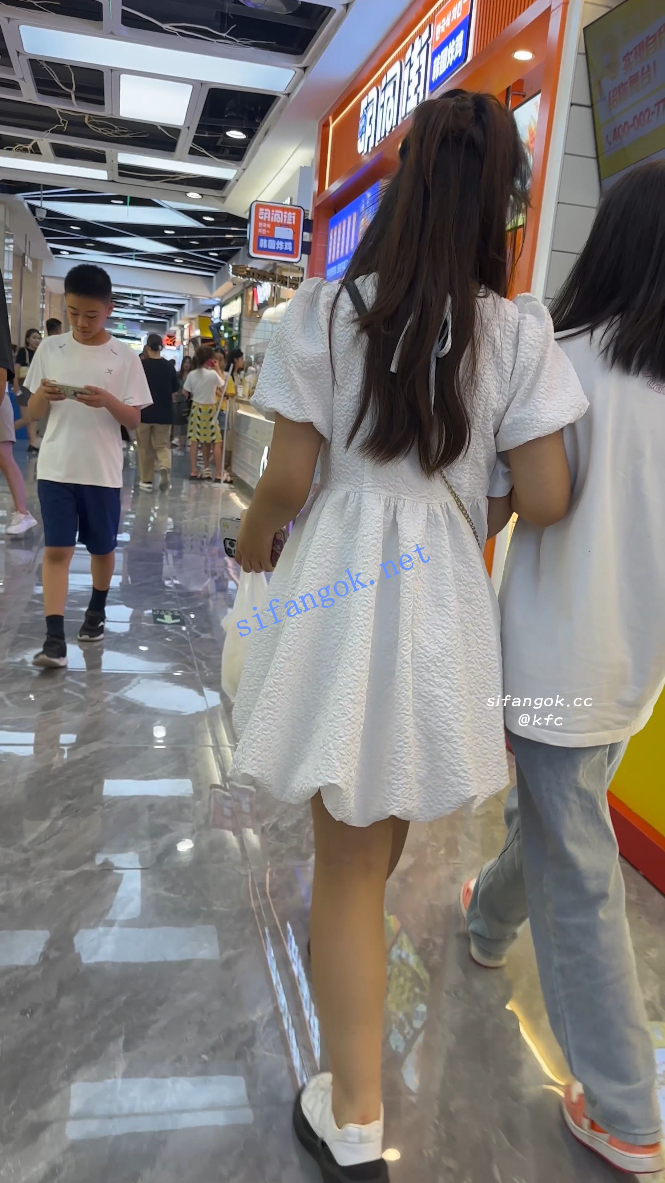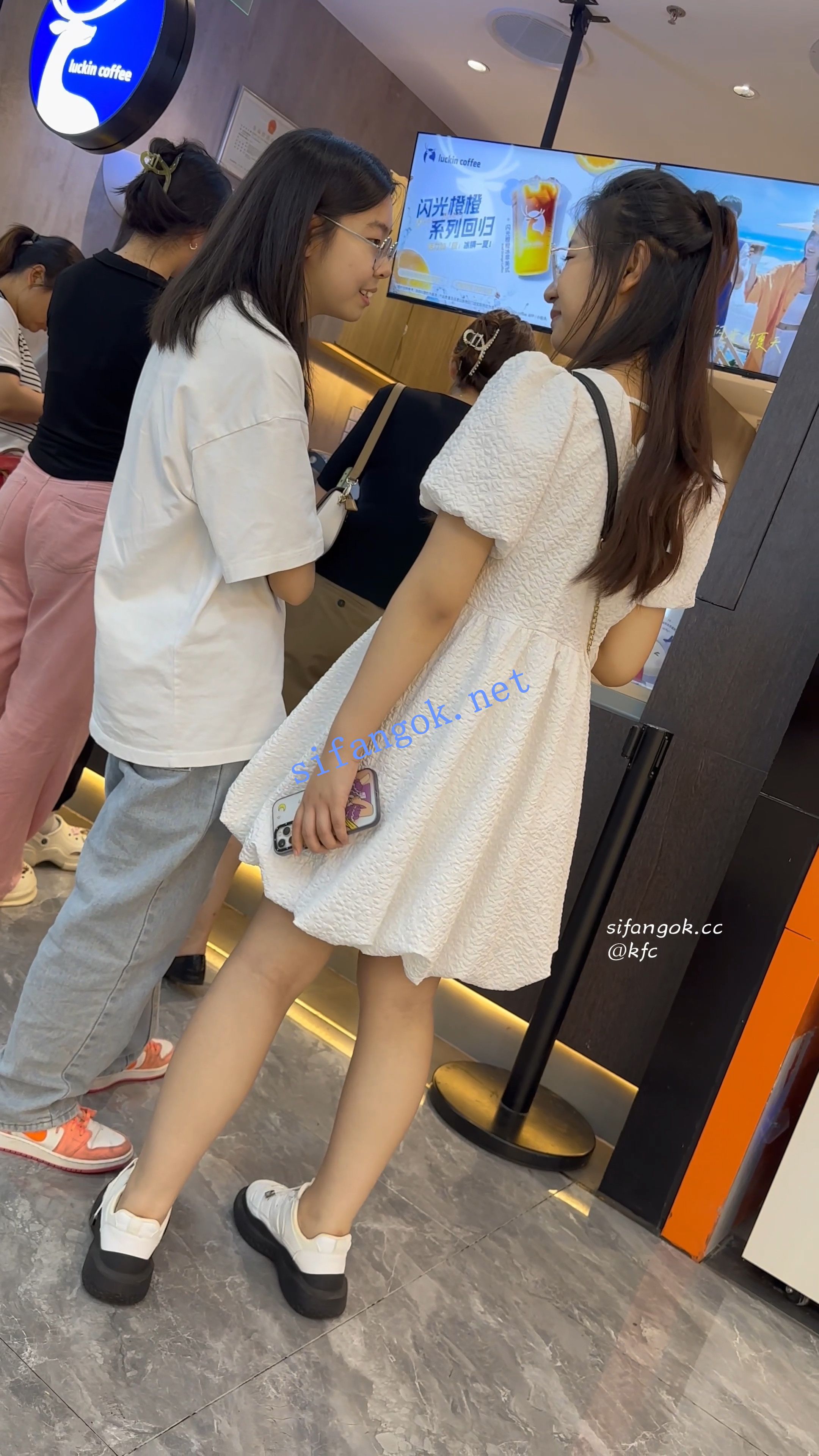 【KFC】长裙眼镜学生妹和闺蜜逛街·淡蓝色内内前后CD