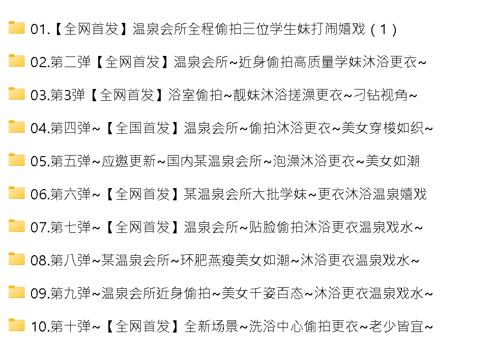 【资源名称】: 【偷拍】国内某洗浴中心温泉会所~美女如云~身临其境~目不暇接~第一弹~第十弹【159V+87.2G】 【资源大小】: 【159V+87.2G】 【下载方式】: 度盘 【有无打码】: 无码 【首发/自购】: 否 【分辨率】: 高清