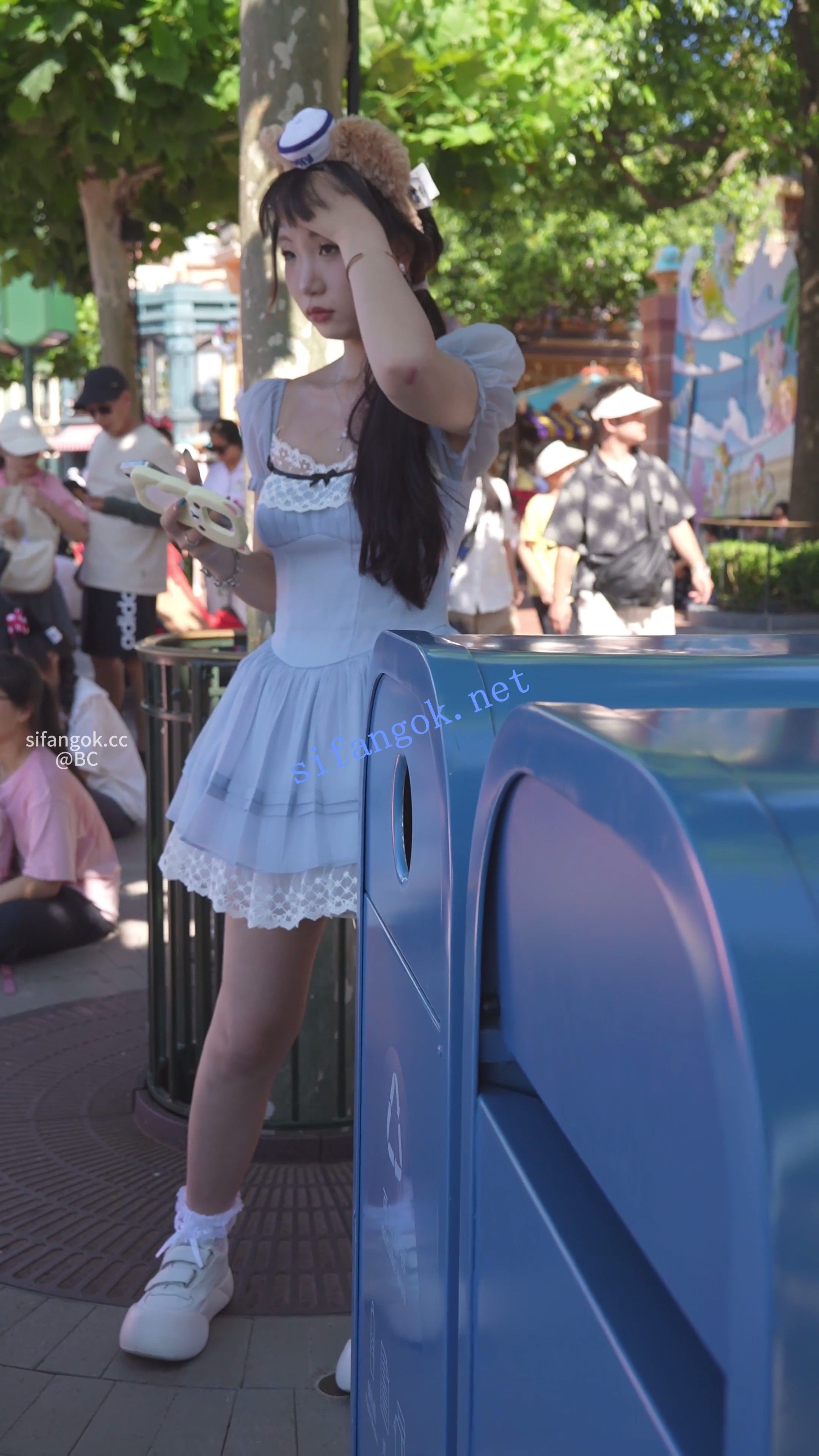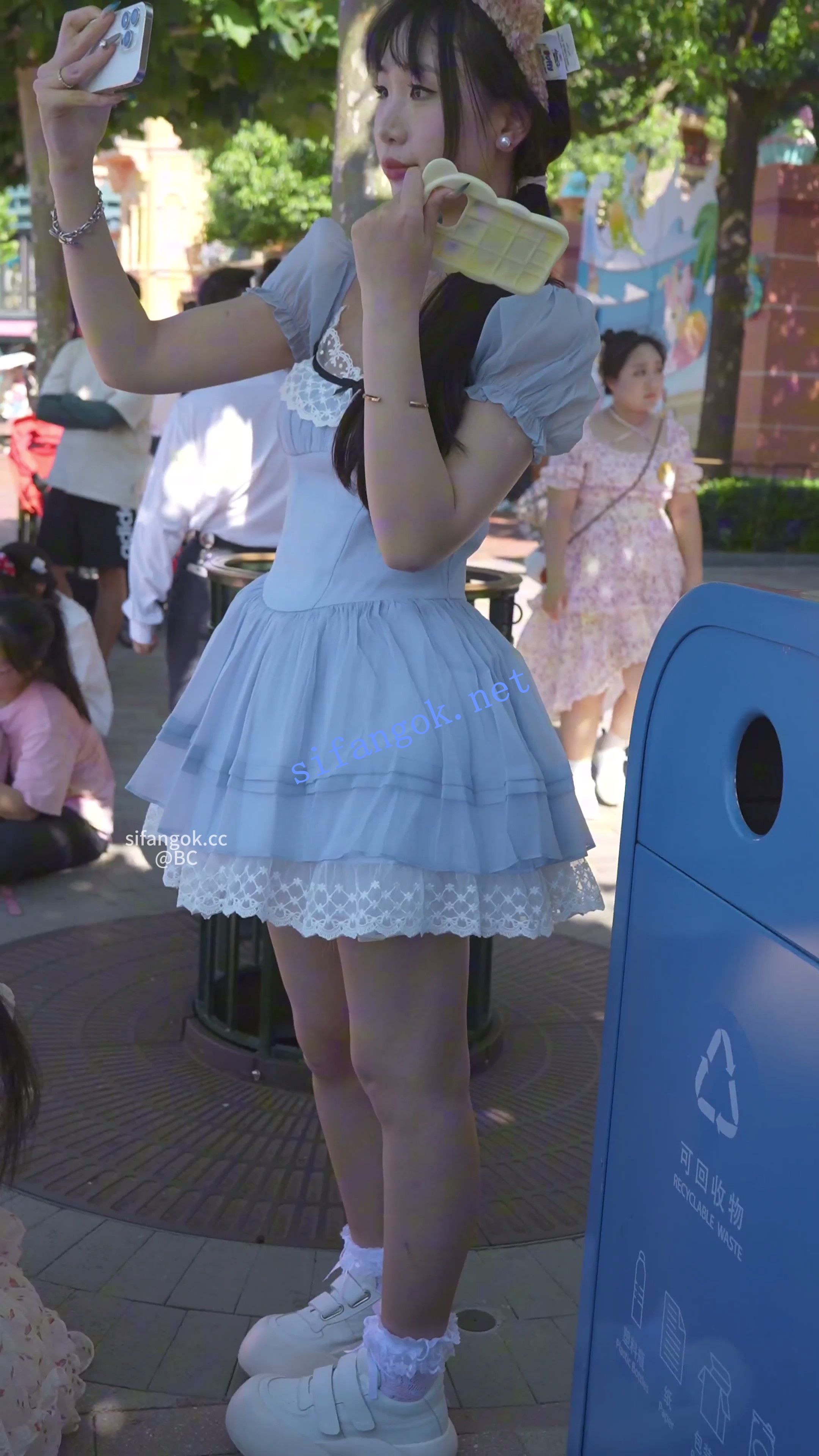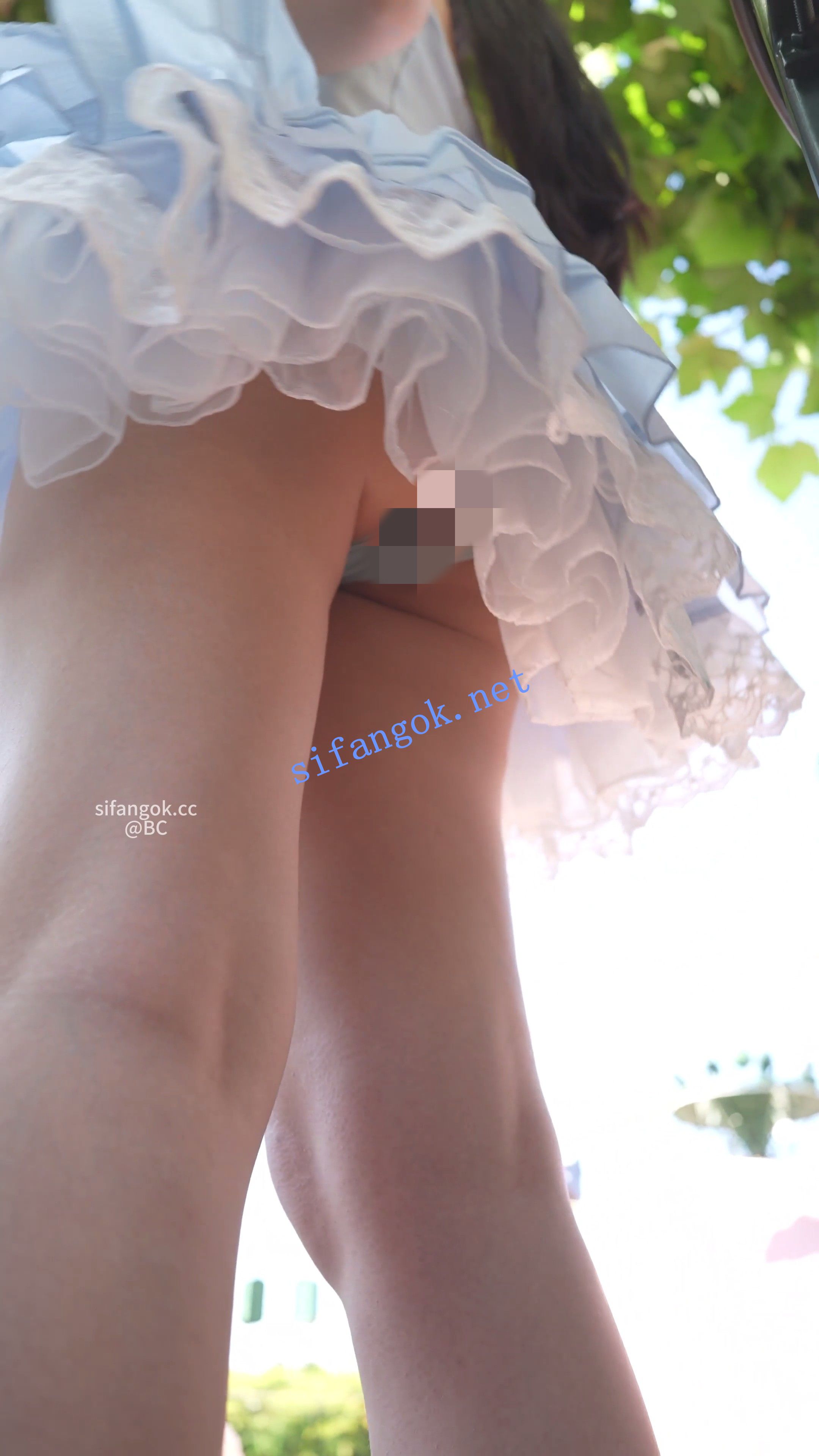 蓝色蕾丝裙小姐姐看表演,半透明内半蹲被前后CD。。
