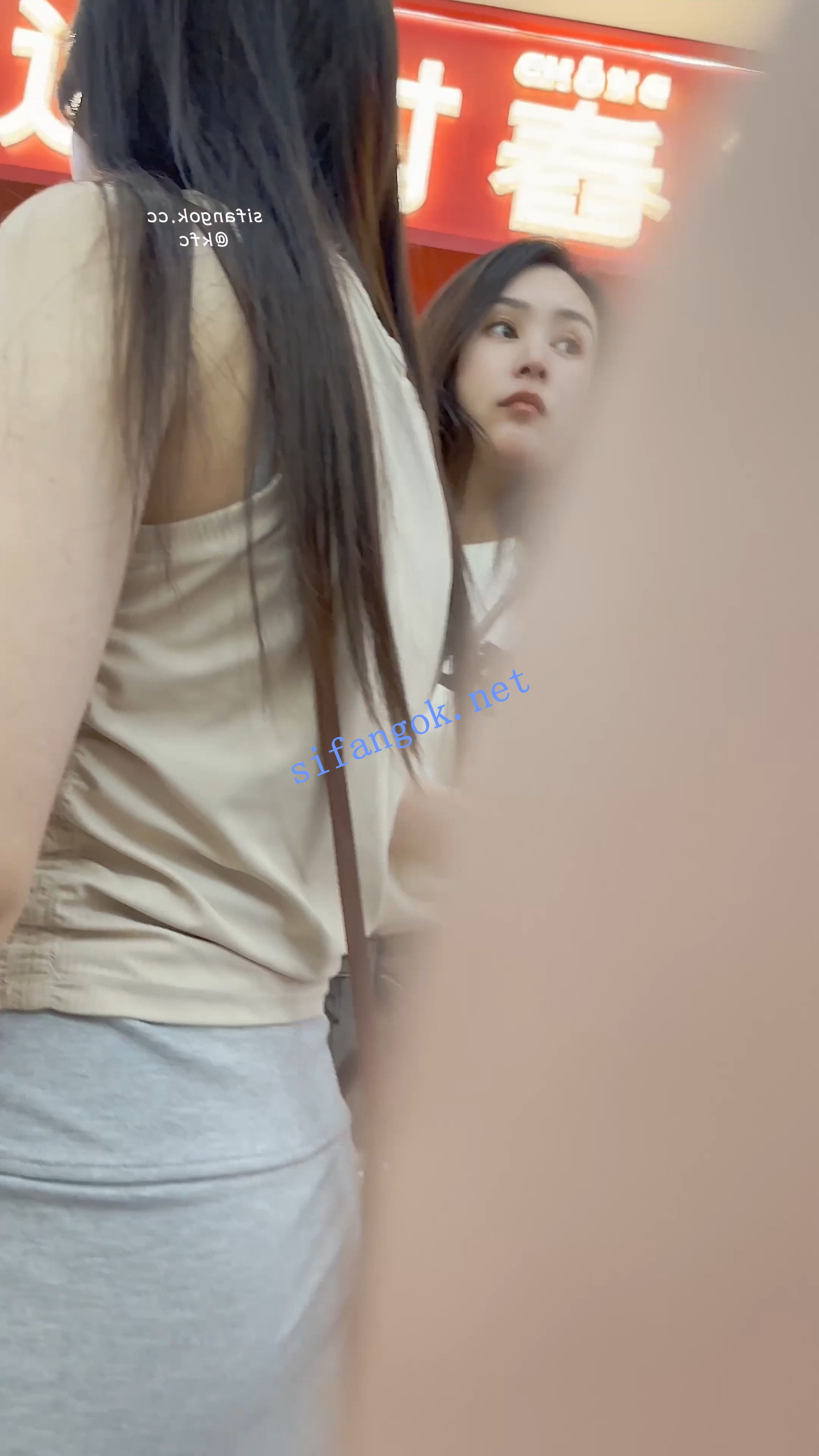 【KFC】短裙少妇·相机放在腿中间CD·弯腰露出粉色无痕骚内
